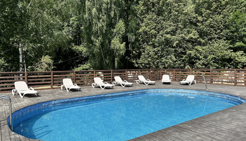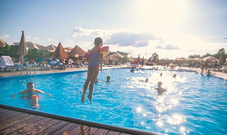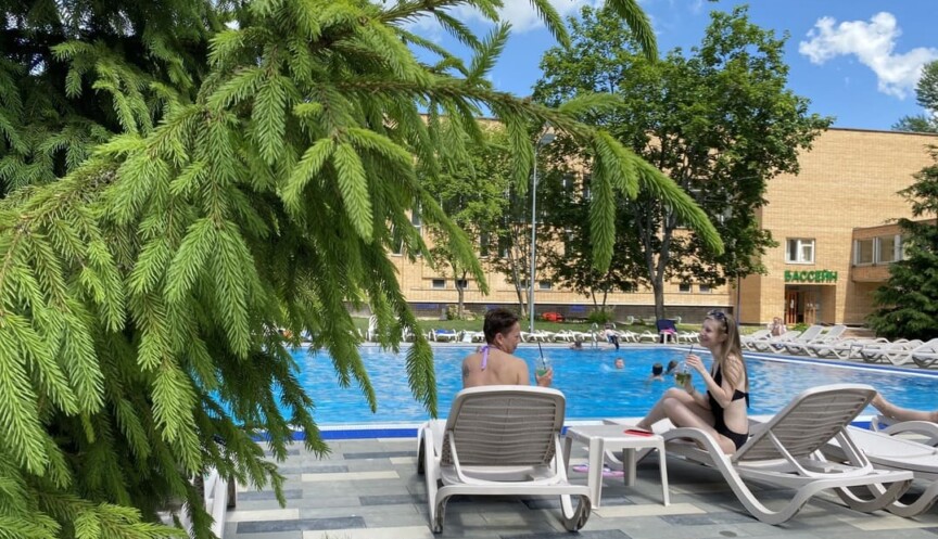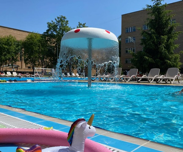 На территории санатория есть большой бассейн с чистой водой, насыщенной полезными микроэлементами.