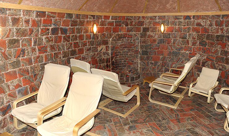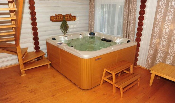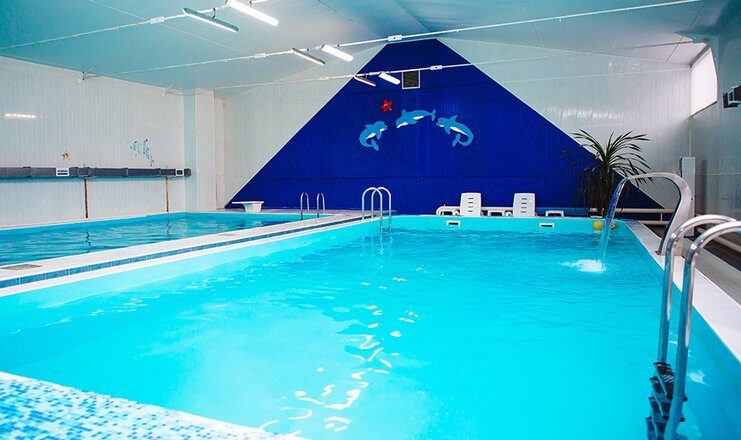В распоряжении бани и несколько бассейнов: бассейн 25 метров (температура воды 27 градусов), детский игровой бассейн с гейзером и водопадом — длина 10 метров (температура воды 29 градусов), джакузи — диаметром 6 метров (температура воды 31 градус)